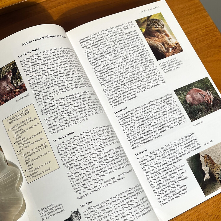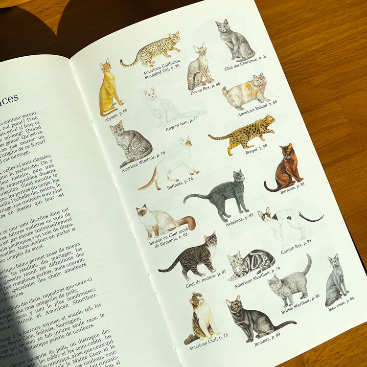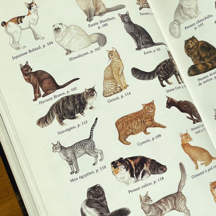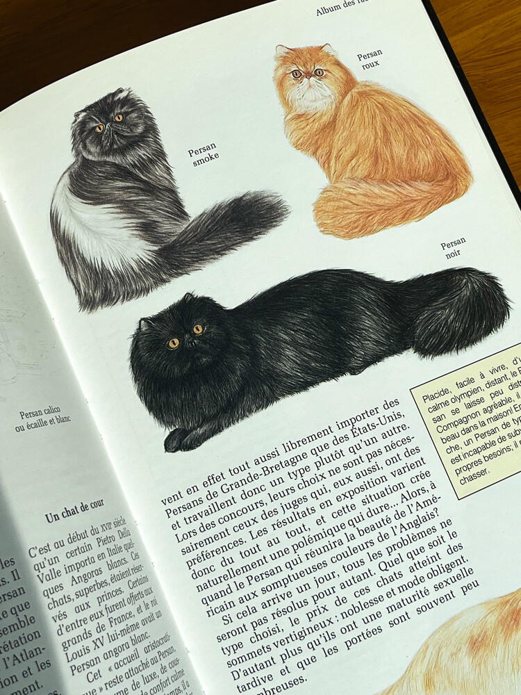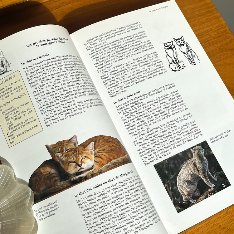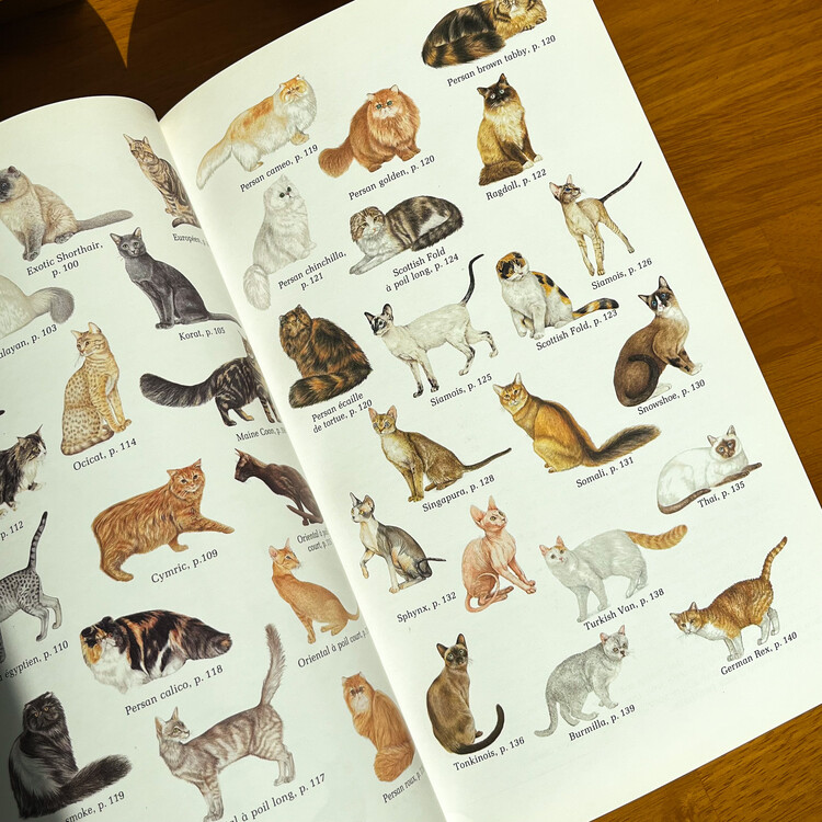 두터운 고양이 도감입니다. 생물학, 문화적 역사와 다양한 종들 소개가 삽화와 함께 담겨있습니다.