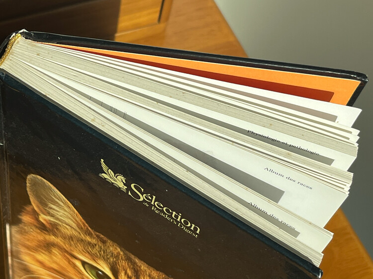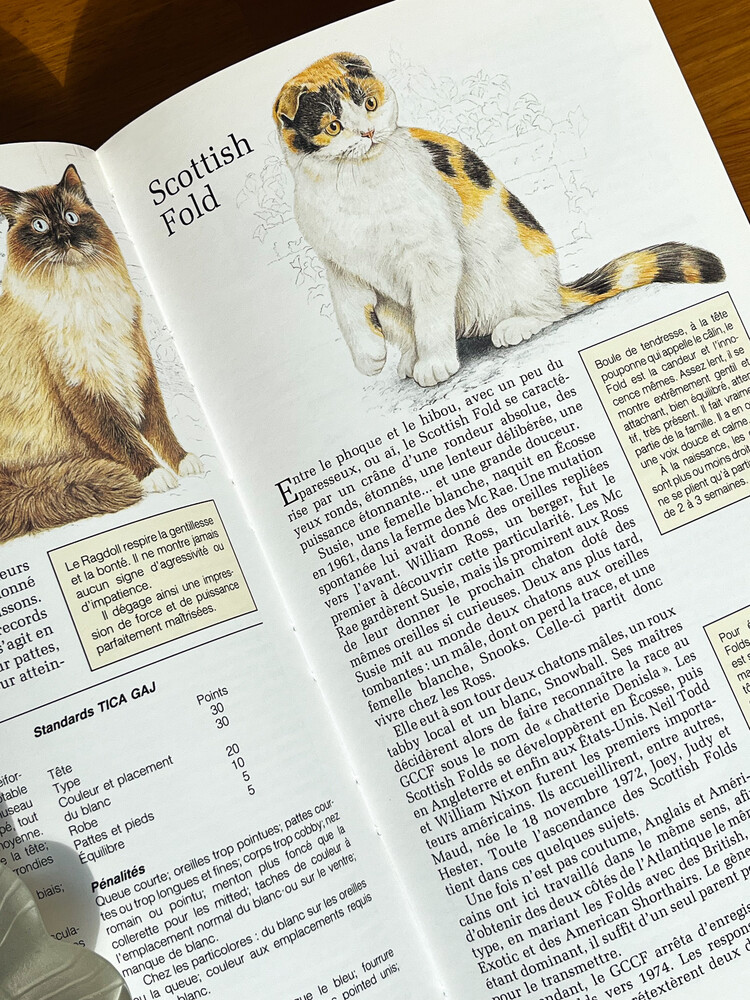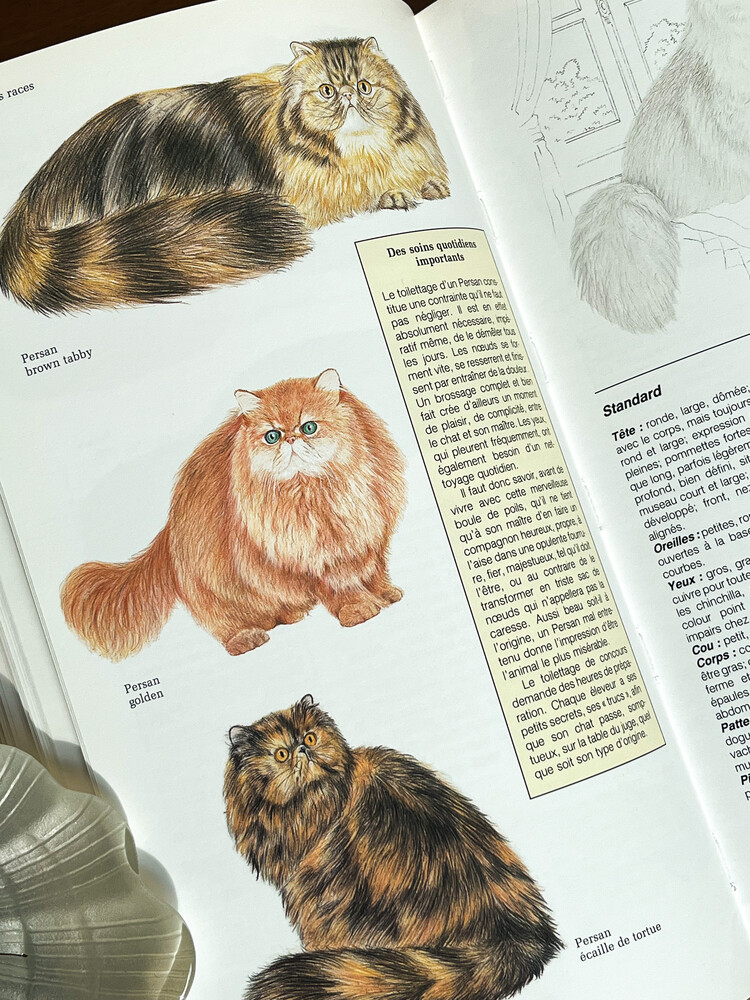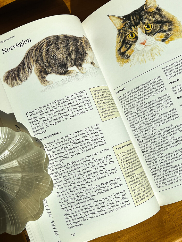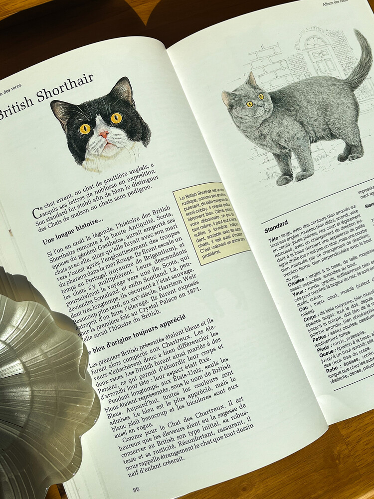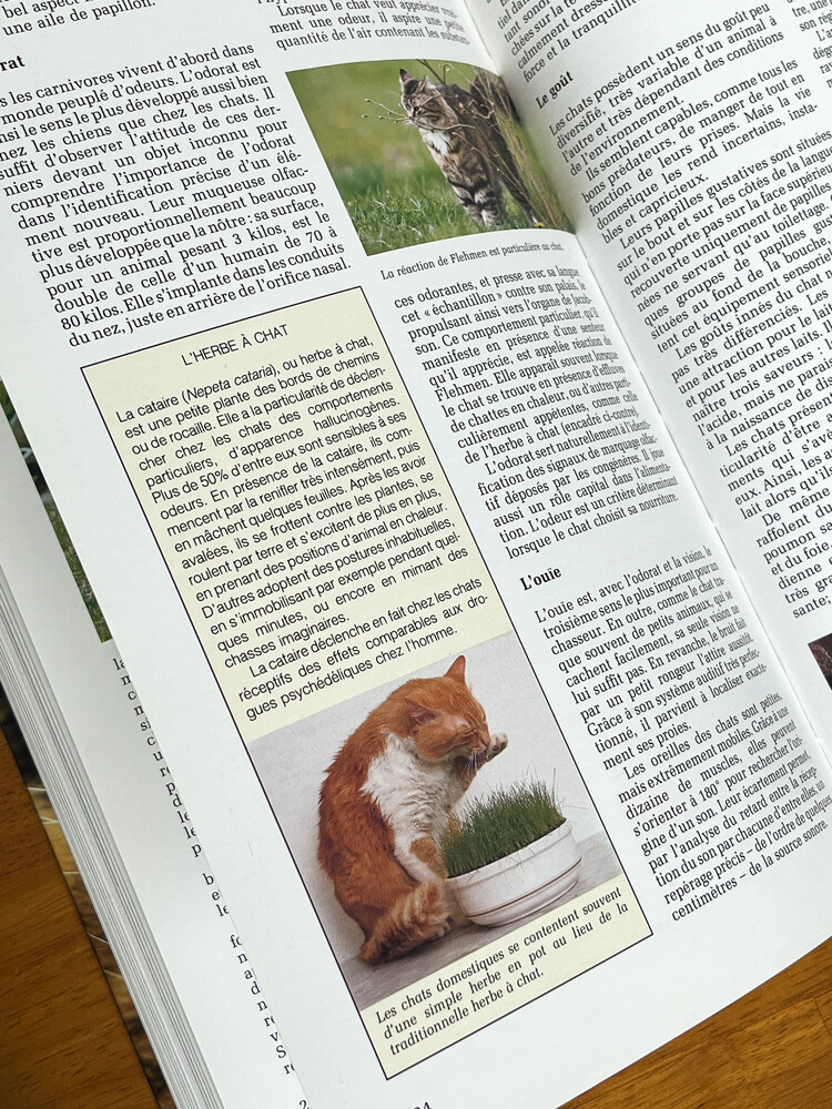 두터운 고양이 도감입니다. 생물학, 문화적 역사와 다양한 종들 소개가 삽화와 함께 담겨있습니다.