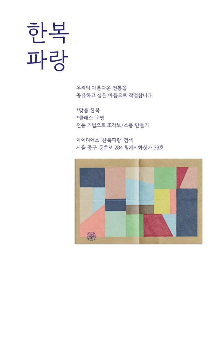 라벨은 양면으로 앞,뒤 각각 '파랑'과 한복 파랑의 무늬가 새겨져 있습니다.