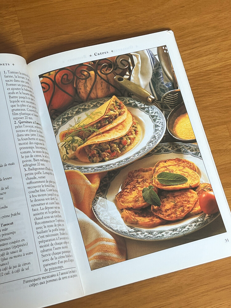 오믈렛, 크레페, 베니에 레시피가 소개된 쿡북입니다.
