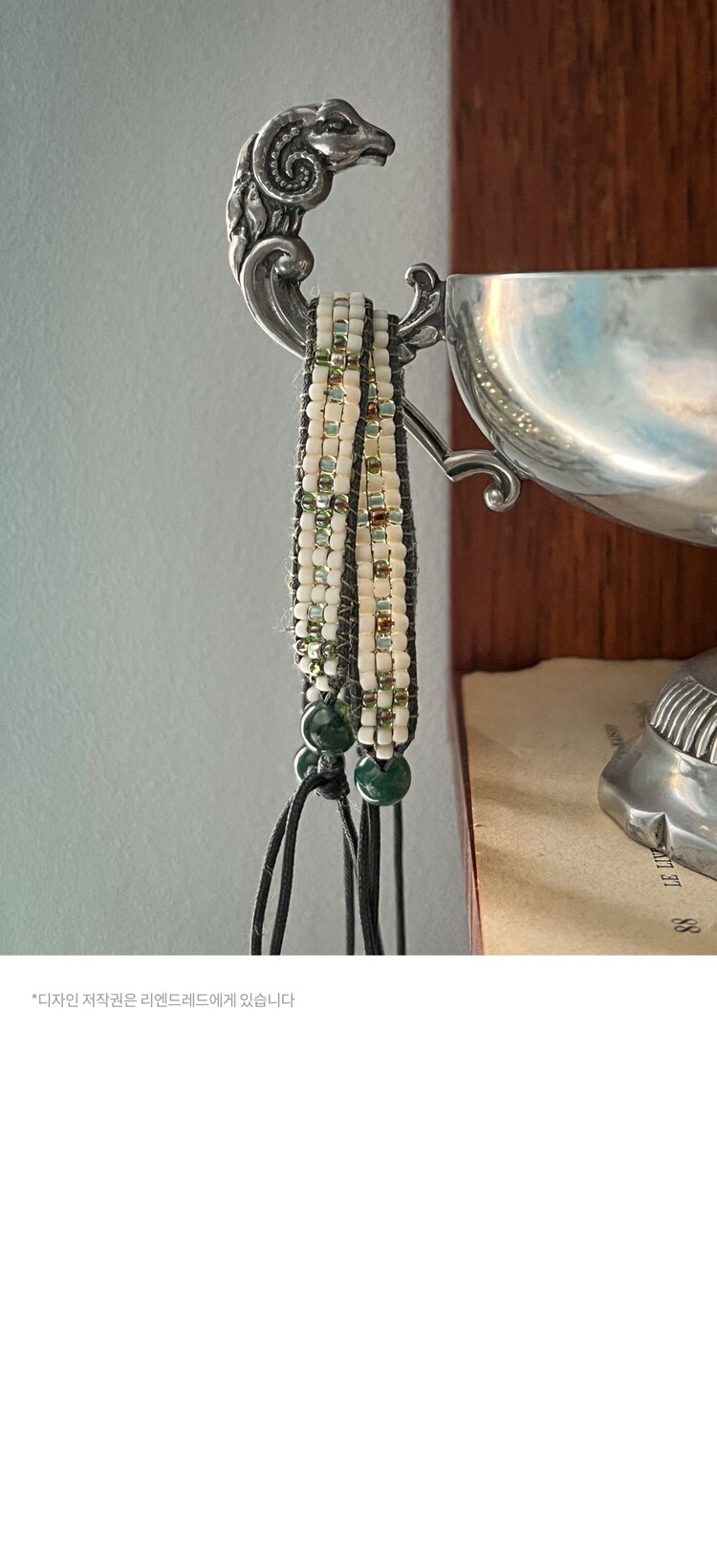착용 시 비즈 사이로 빠져나오는 실밥은 쪽가위 등의 도구로 바짝 잘라주시면 됩니다.