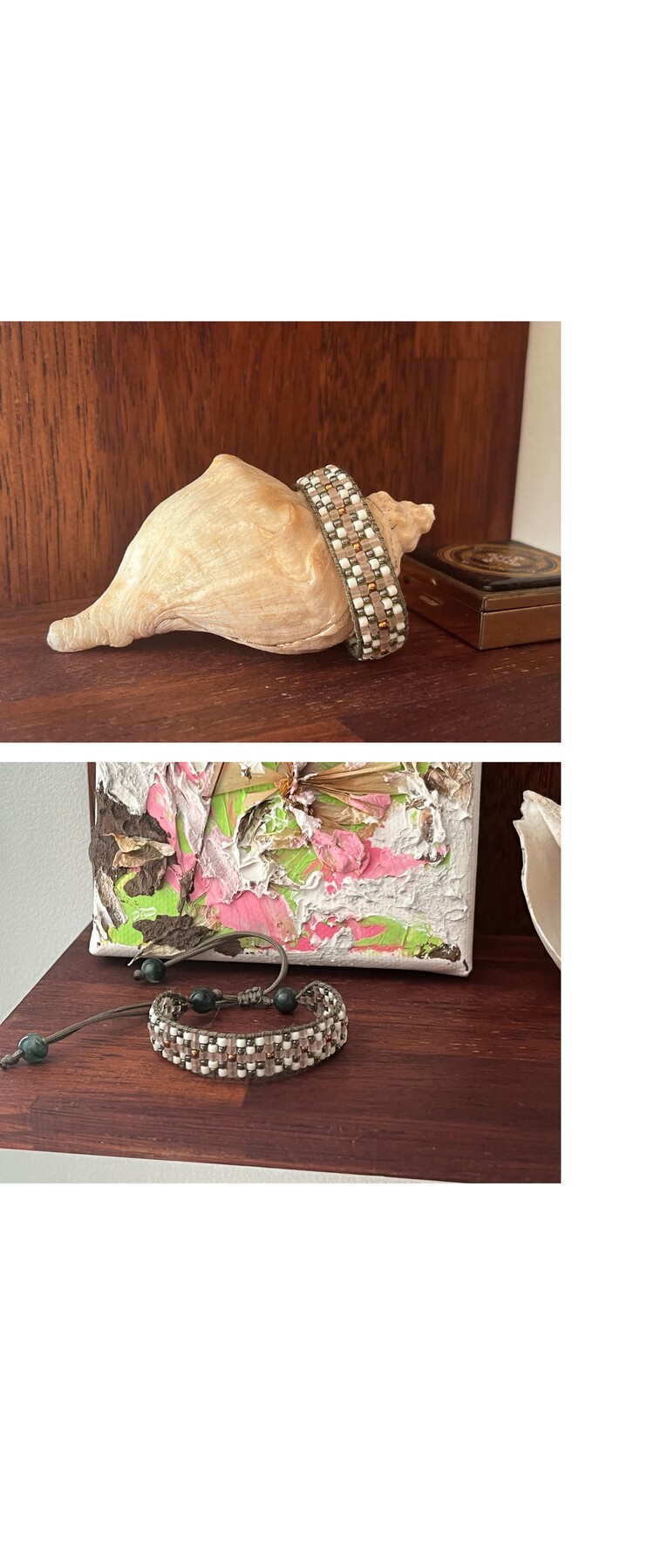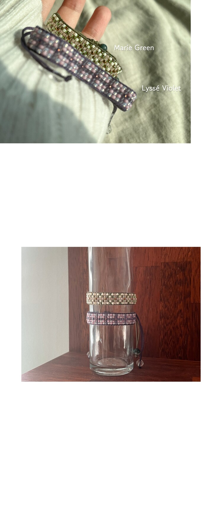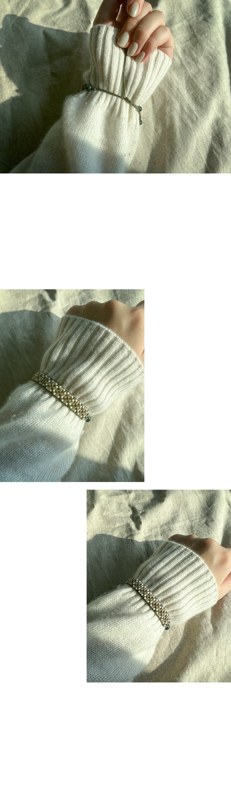 팔찌를 조이고 늘리는 동작의 반복으로 비즈가 우글우글 모이는 현상이 생길 수 있습니다. 터지거나 하는 위험은 없으니 걱정 마시고 손가락으로 살살 팔찌 중앙부터 바깥쪽으로 평평하게 만져주세요.