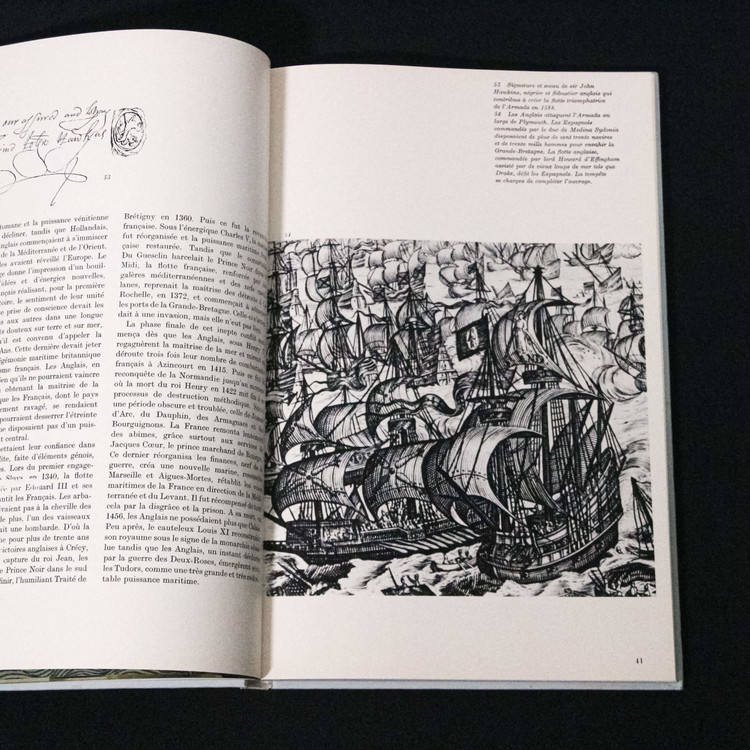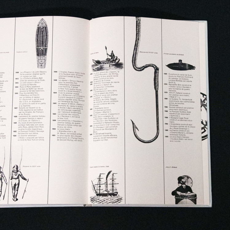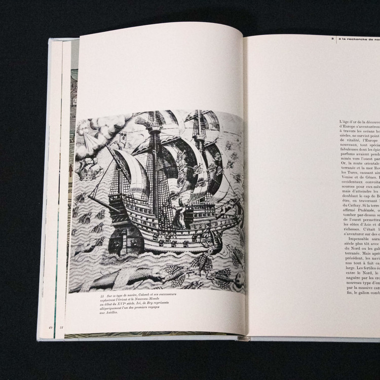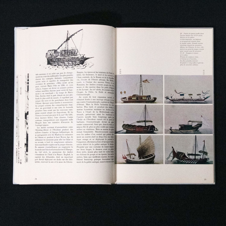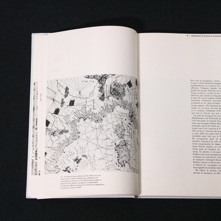 항해술에 관한 역사를 다룬 서적입니다. 특유의 빈티지한 차가운 컬러감의 이미지들과 관련 그림들이 삽입되었어요. 1963년 스위스에서 인쇄되었으며 조금만 들여다 보아도 잉크와 종이의 질감이 요즘의 책들과는 전혀 다른, 오래전의 것이라는 느낌이 들어 더욱더 매력적입니다.