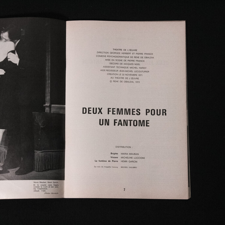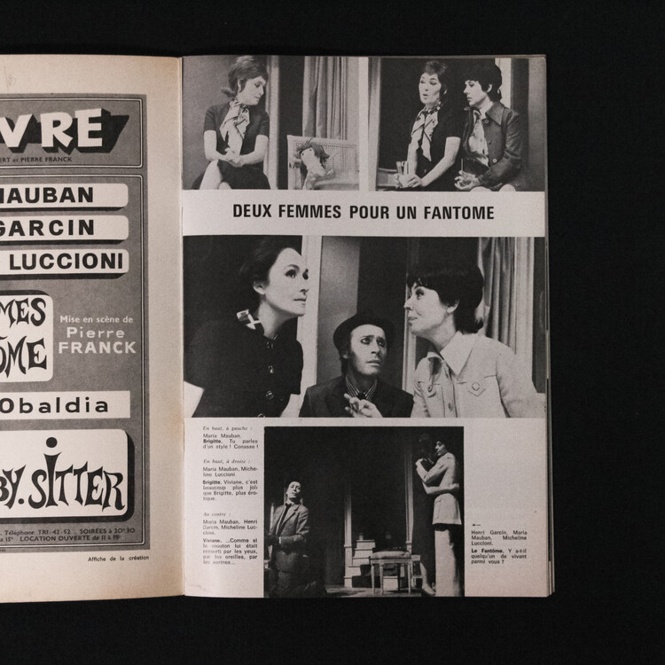 프랑스에서 발매되었던 연극 매거진입니다. 소개드리는 호에서는 프랑스의 극작가이자 시인인 오발디아의 두 연극 Deux femmes pour un fantome(유령을 위한 두 여자) La baby-sitter(베이비 시터) 에 대한 이야기가 담실려있습니다.