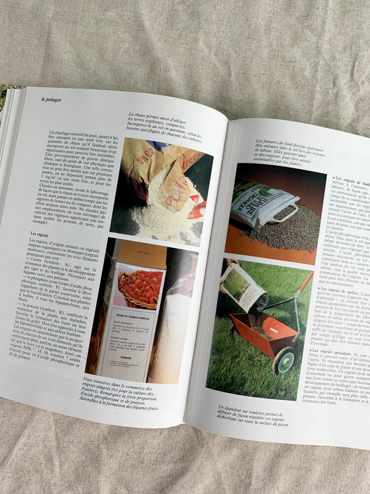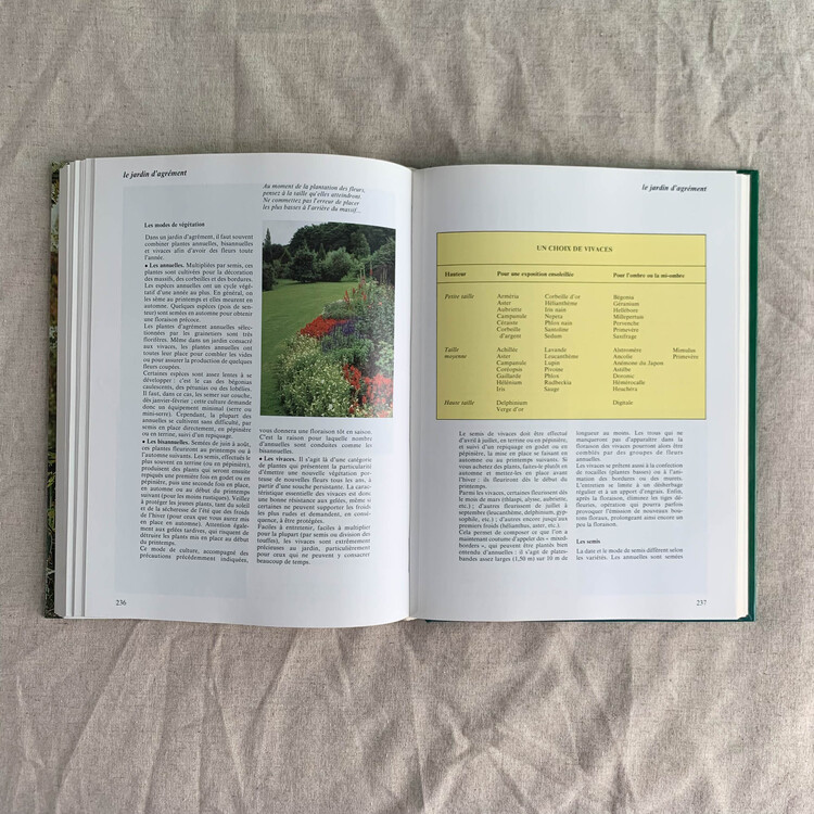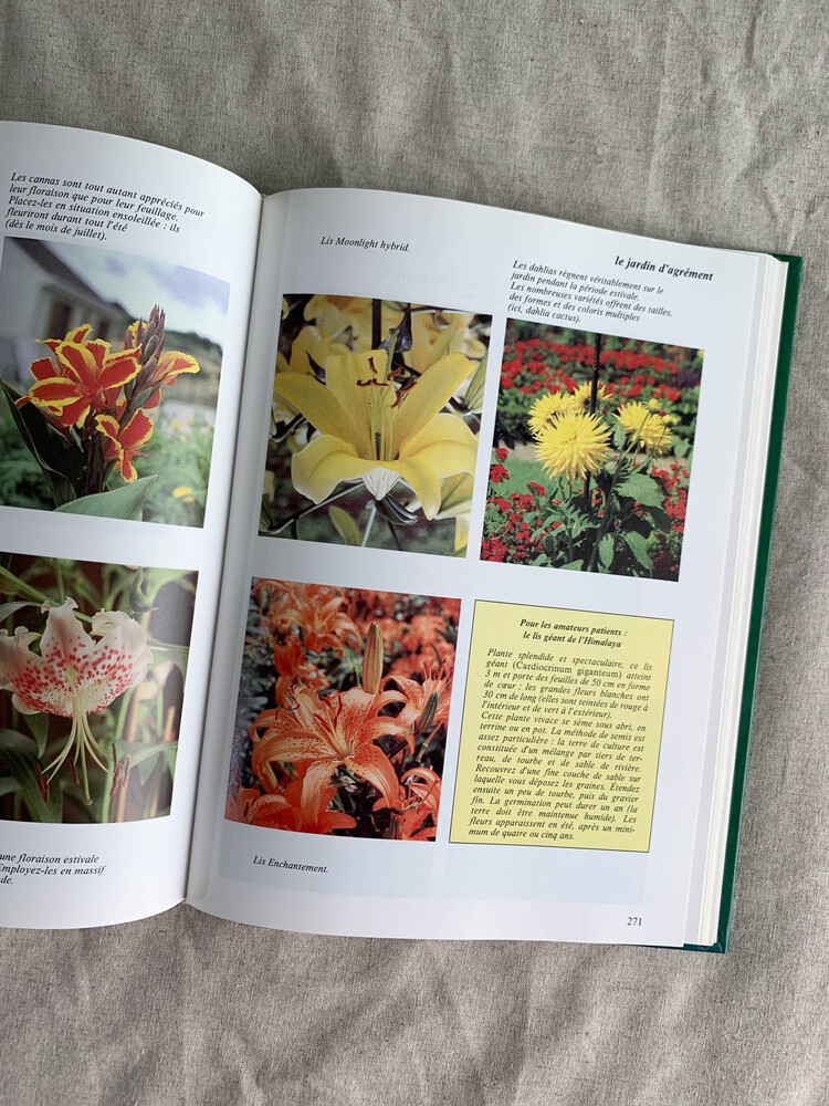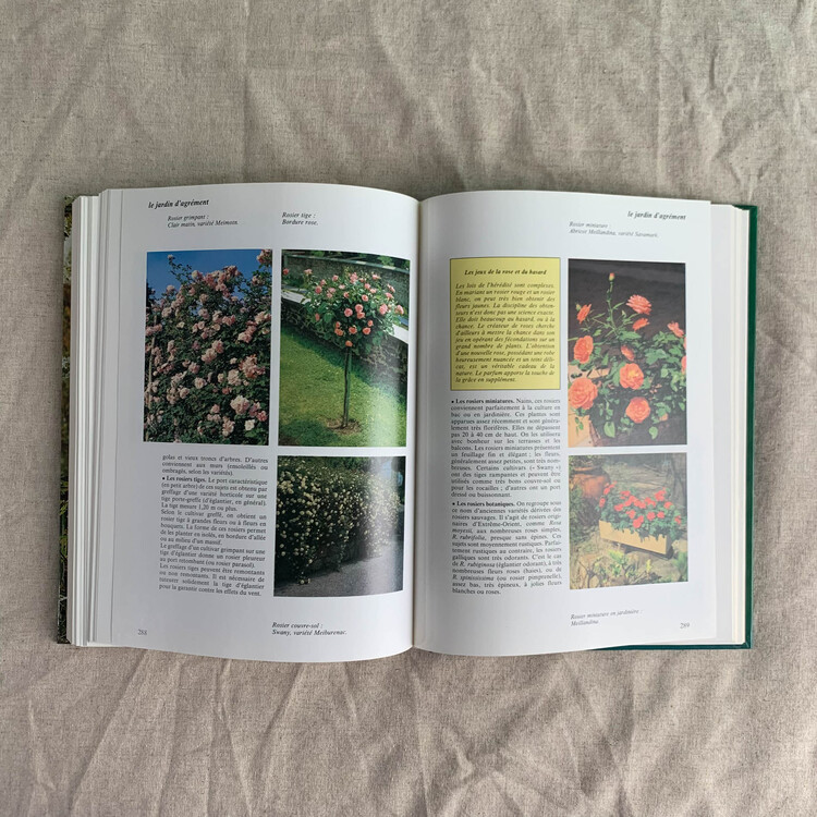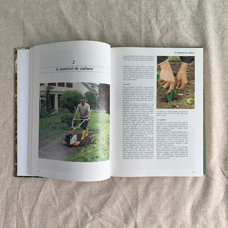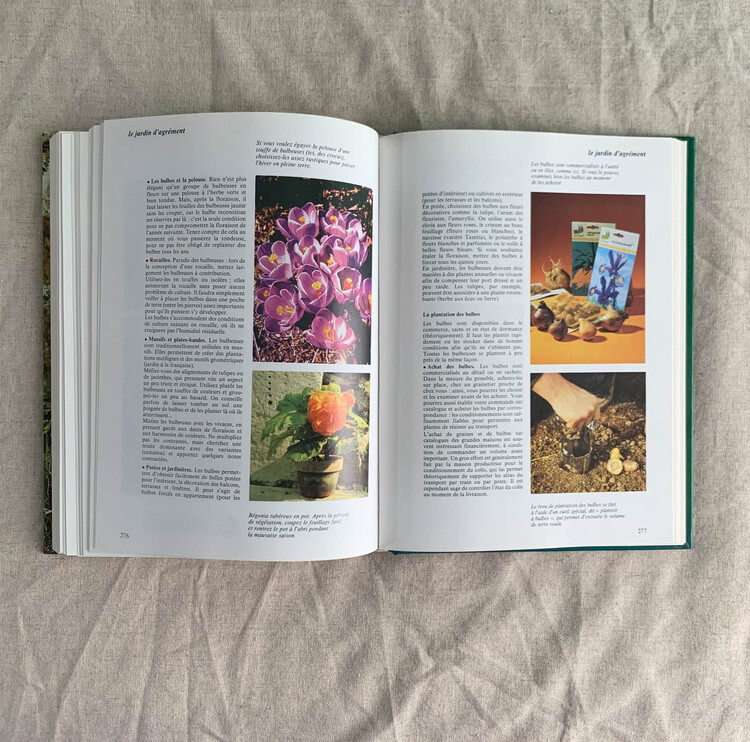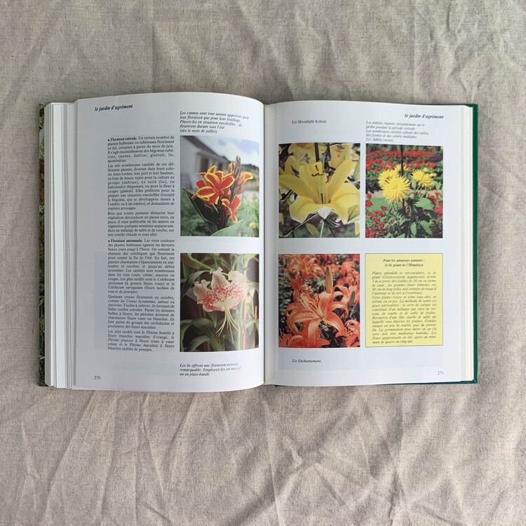 두꺼운 원예서적입니다. 기를 수 있는 식물의 종류, 돌봄 법, 정원에 필요한 기본 지식등의 내용이 담겨있습니다.