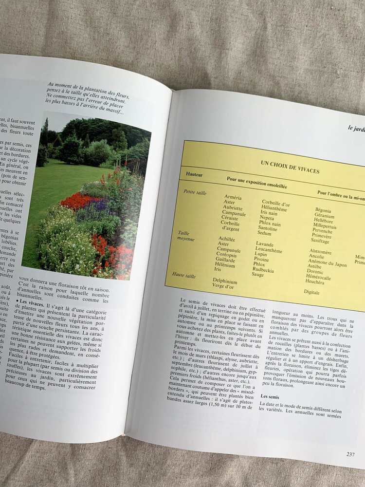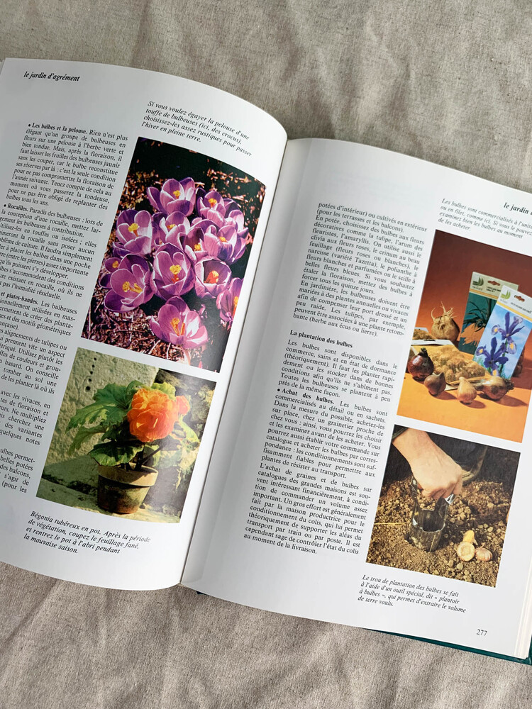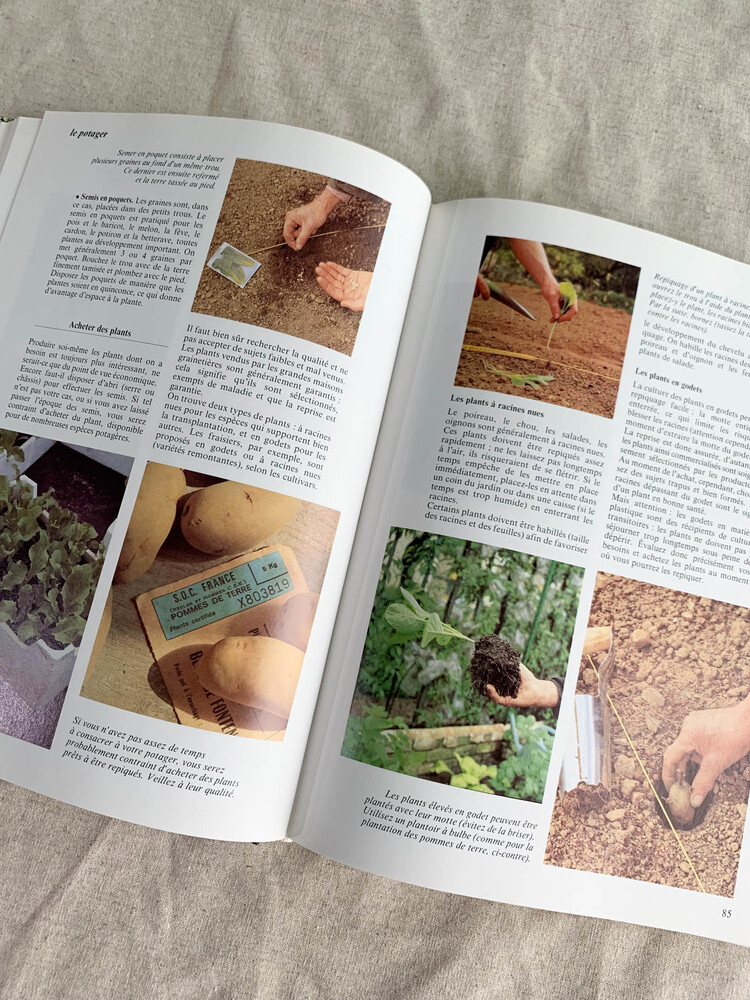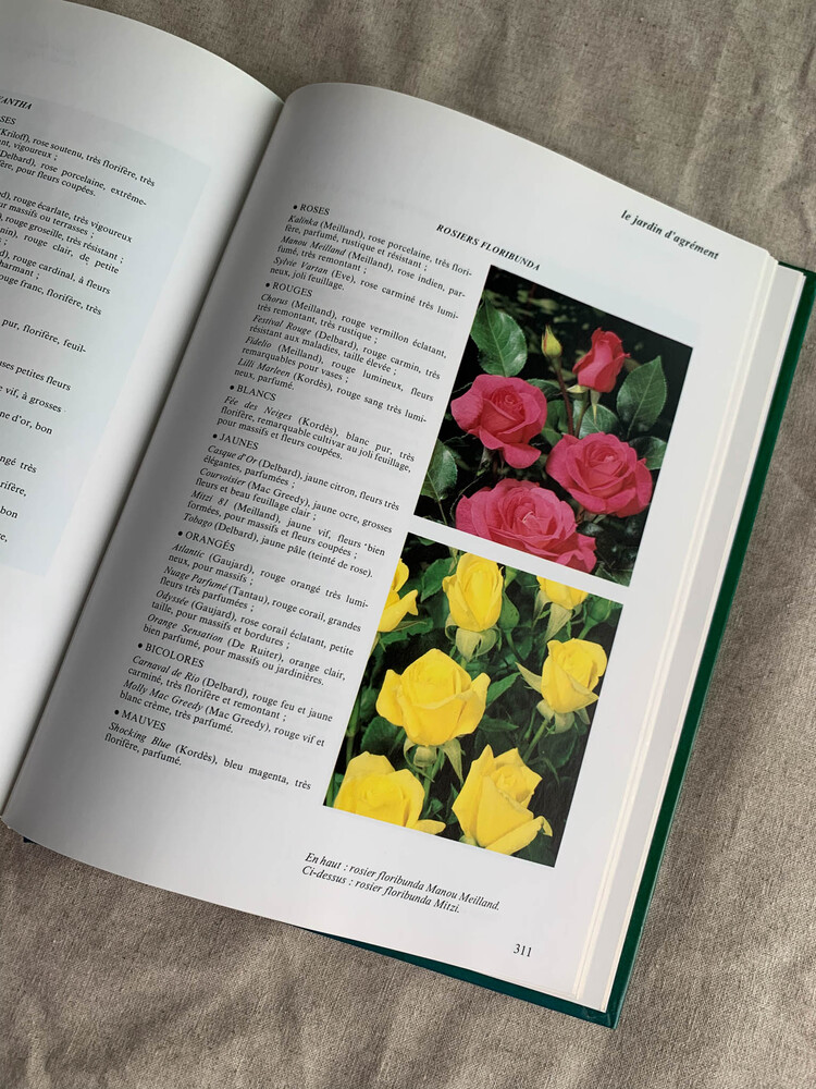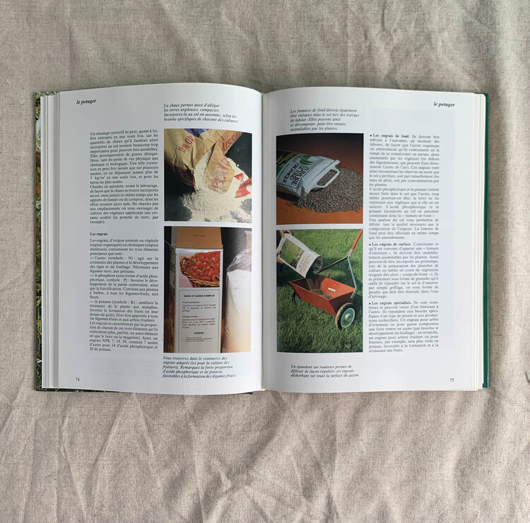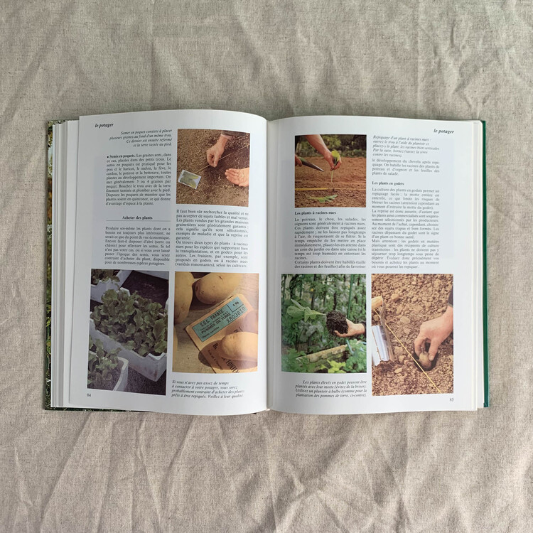 두꺼운 원예서적입니다. 기를 수 있는 식물의 종류, 돌봄 법, 정원에 필요한 기본 지식등의 내용이 담겨있습니다.