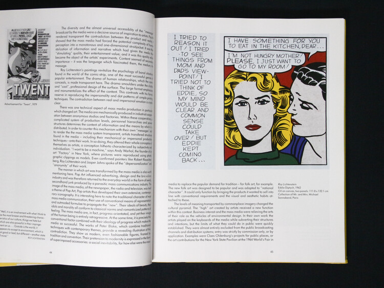 엔디 워홀, 재스퍼 존스, 로이 리히텐슈타인, 클라스 올덴버그, 로버트 리오센버그, 제임르 로젠퀴스트, 톰 웨셀만등의 팝아트 아티스들의 작품과 팝아트의 탄생과 역사를 소개하고 있습니다.