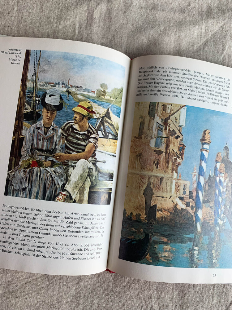 에두아르 마네 작품집입니다. 컬러감이 감도는 보송한 종이 질감이 돋보이는 서적으로 인쇄 퀄리티 매우 우수합니다.