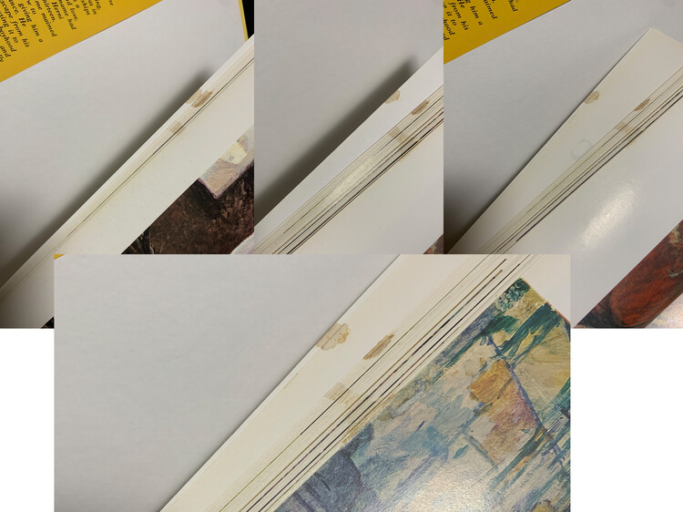 condition: 소프트 커버 전체적인 세월감 많이 느껴지는 컨디션입니다. 테두리, 모서리, 책등 상.하단 모서리 위주의 색바램, 해짐, 자잘한 찢김등의 데미지 눈에 띄며 내지 측면 부분 짙은 얼룩 있습니다. 일부 페이지 안쪽으로 침범된 부분들 있으며 작품 부분에는 침범 약간 있습니다. (하단 이미지 참고)