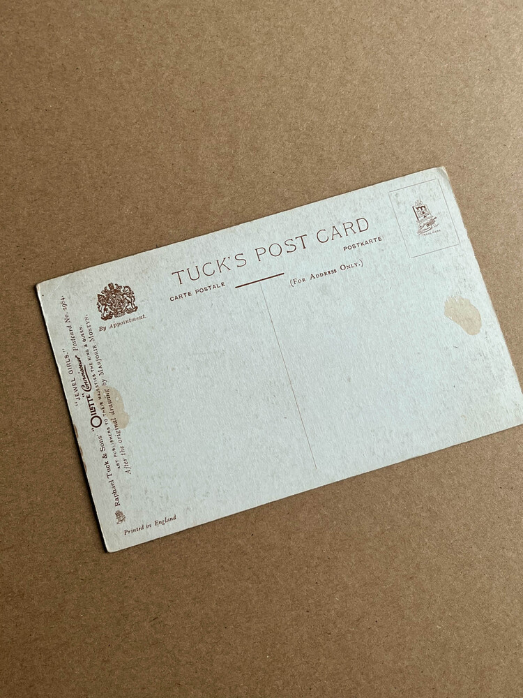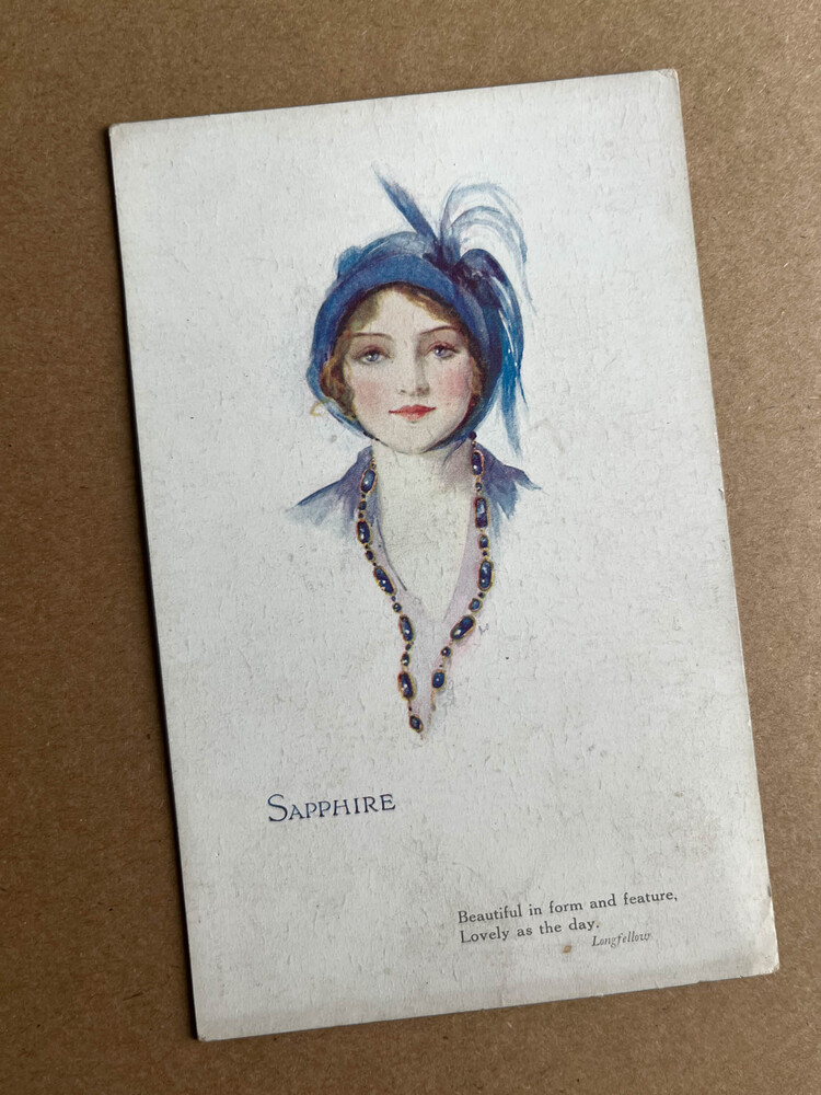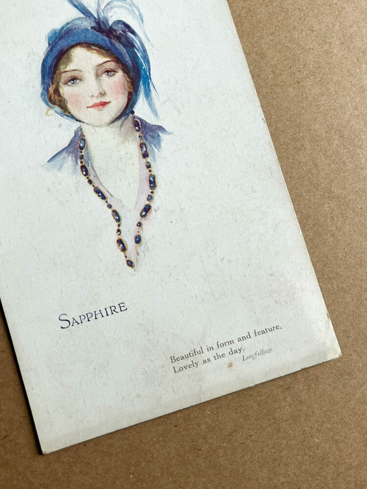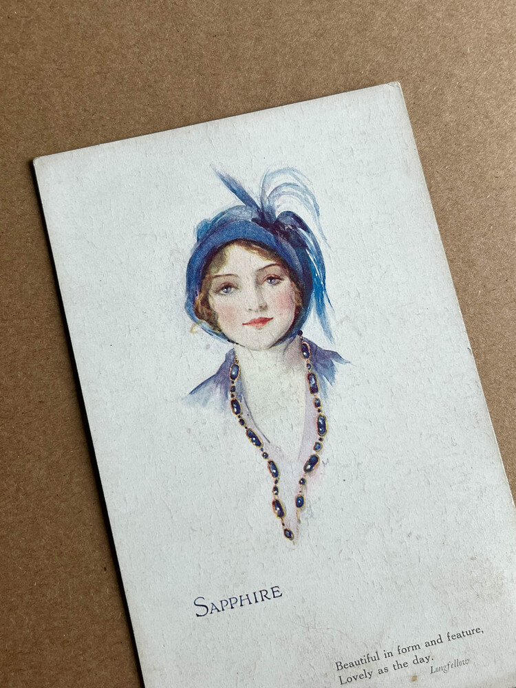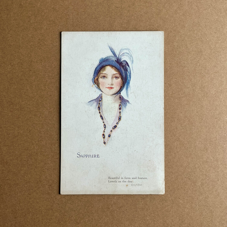 여인의 수채 초상과 롱펠로의 시 한 구절이 담긴 엽서입니다.