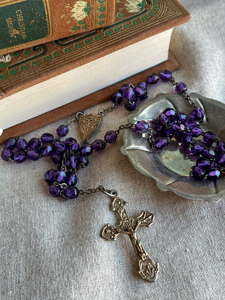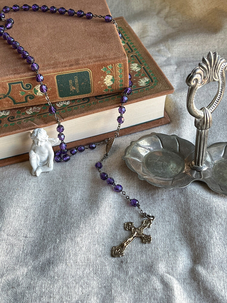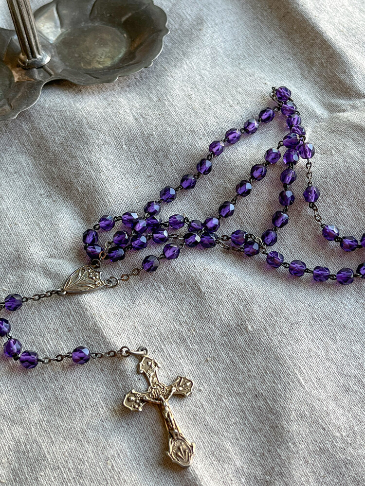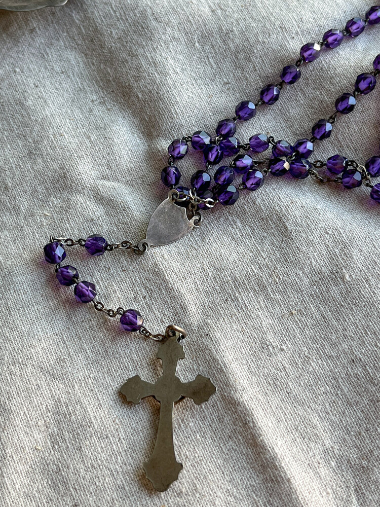 Vintage deep purple beads rosary