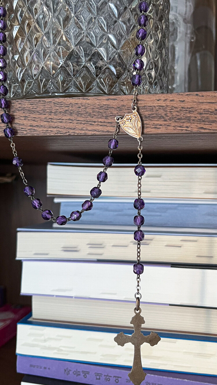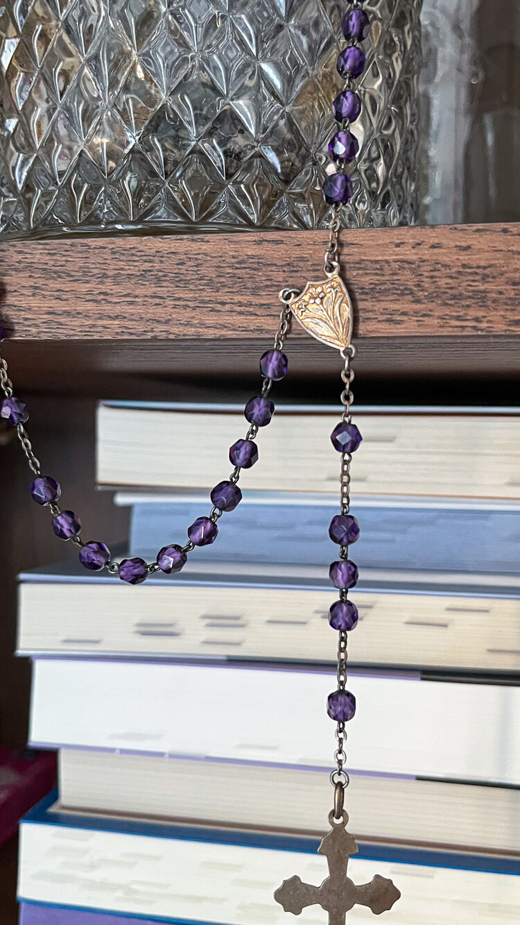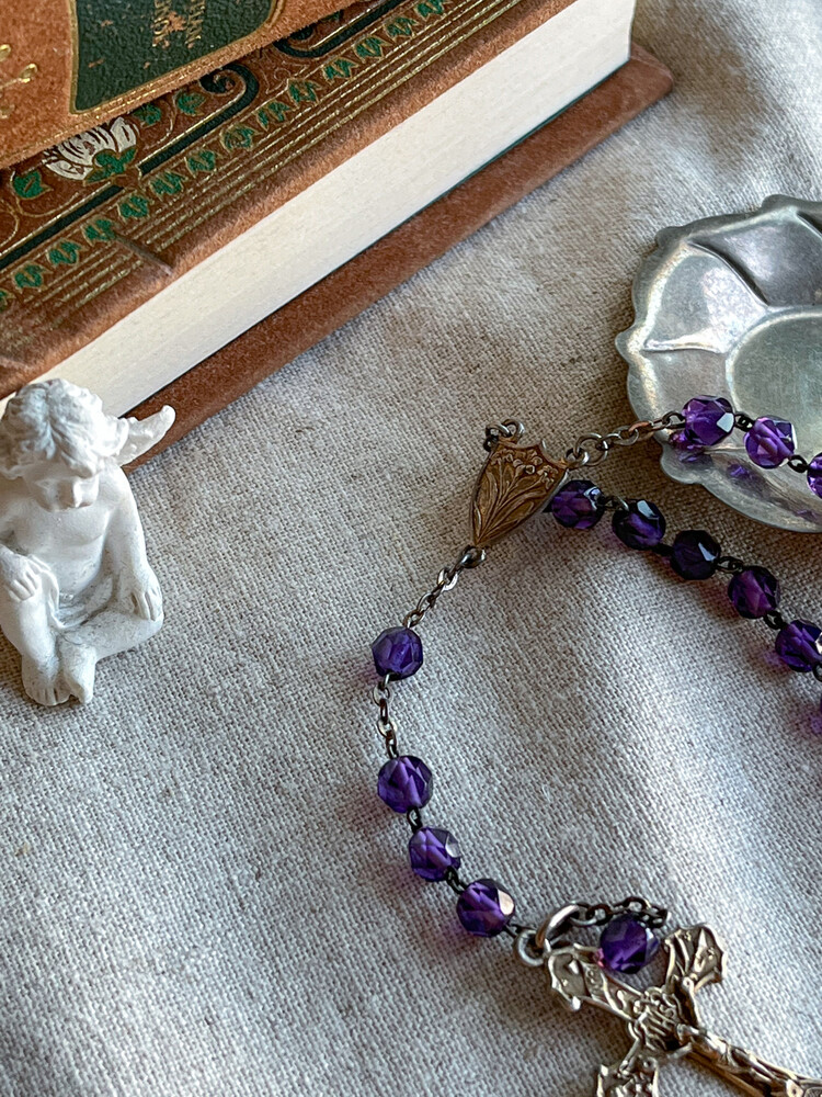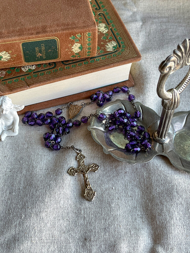 Vintage deep purple beads rosary